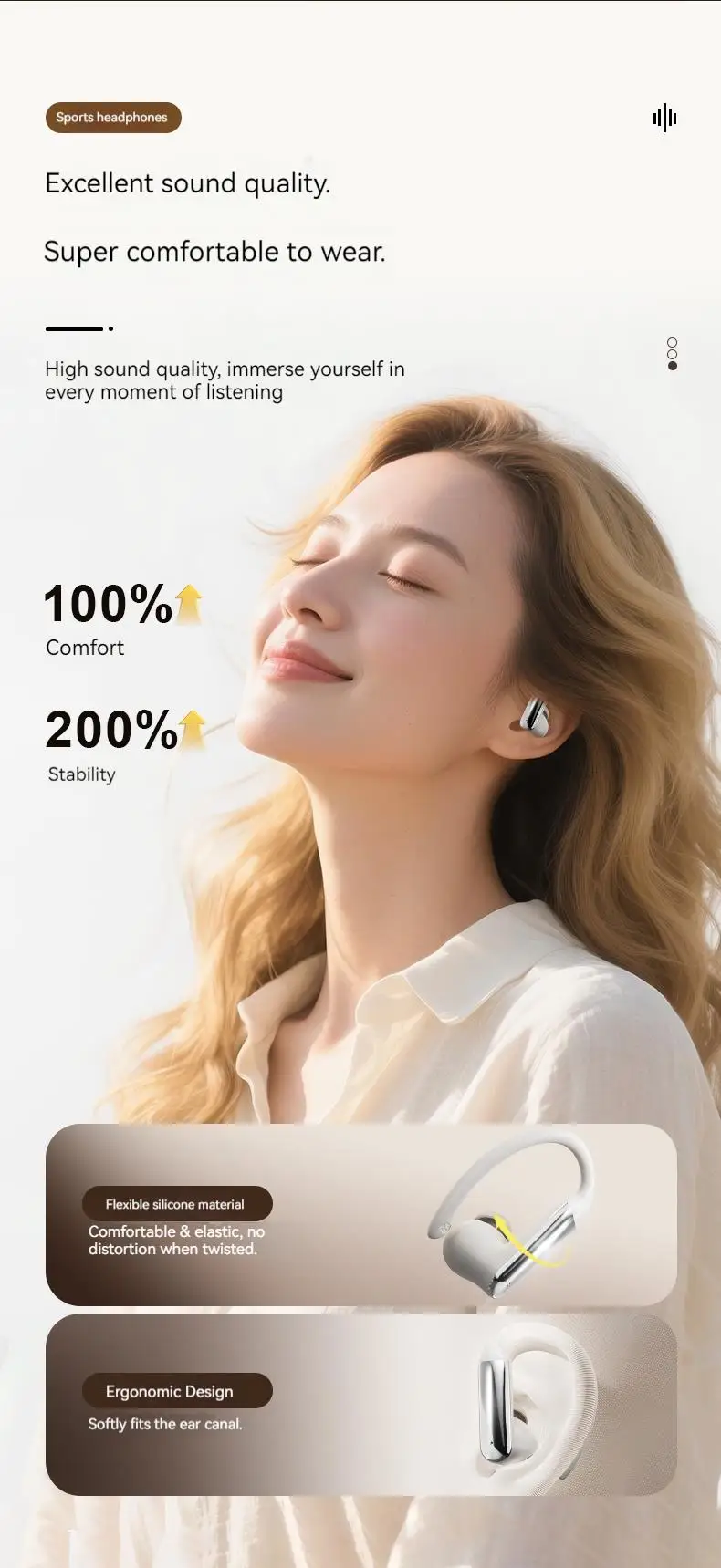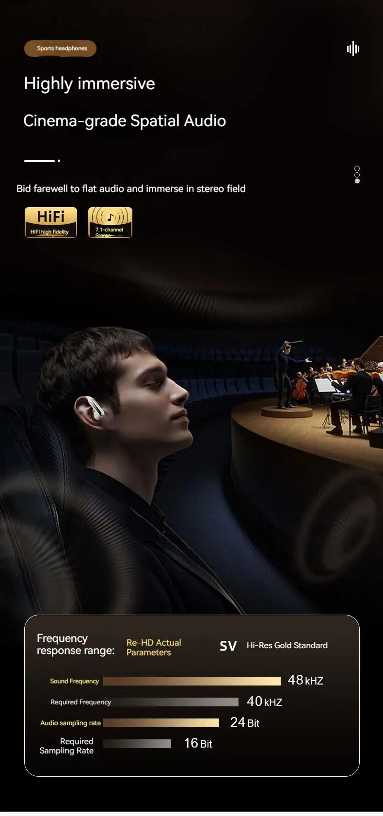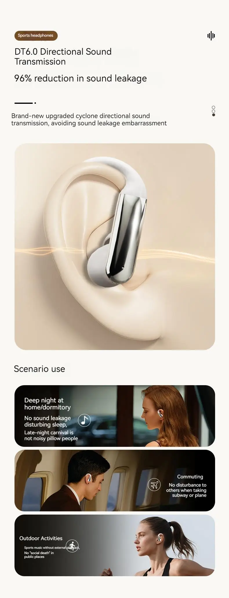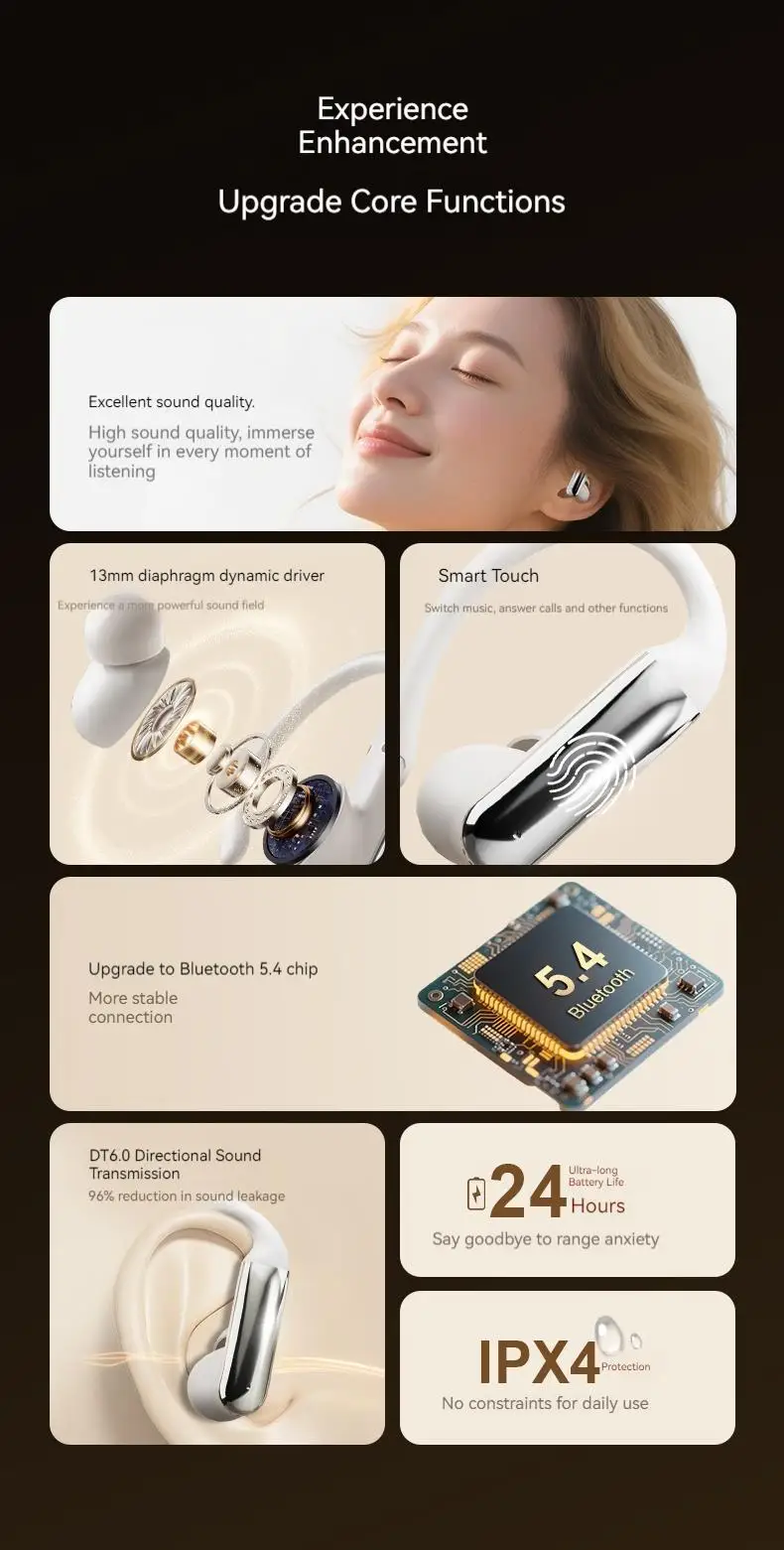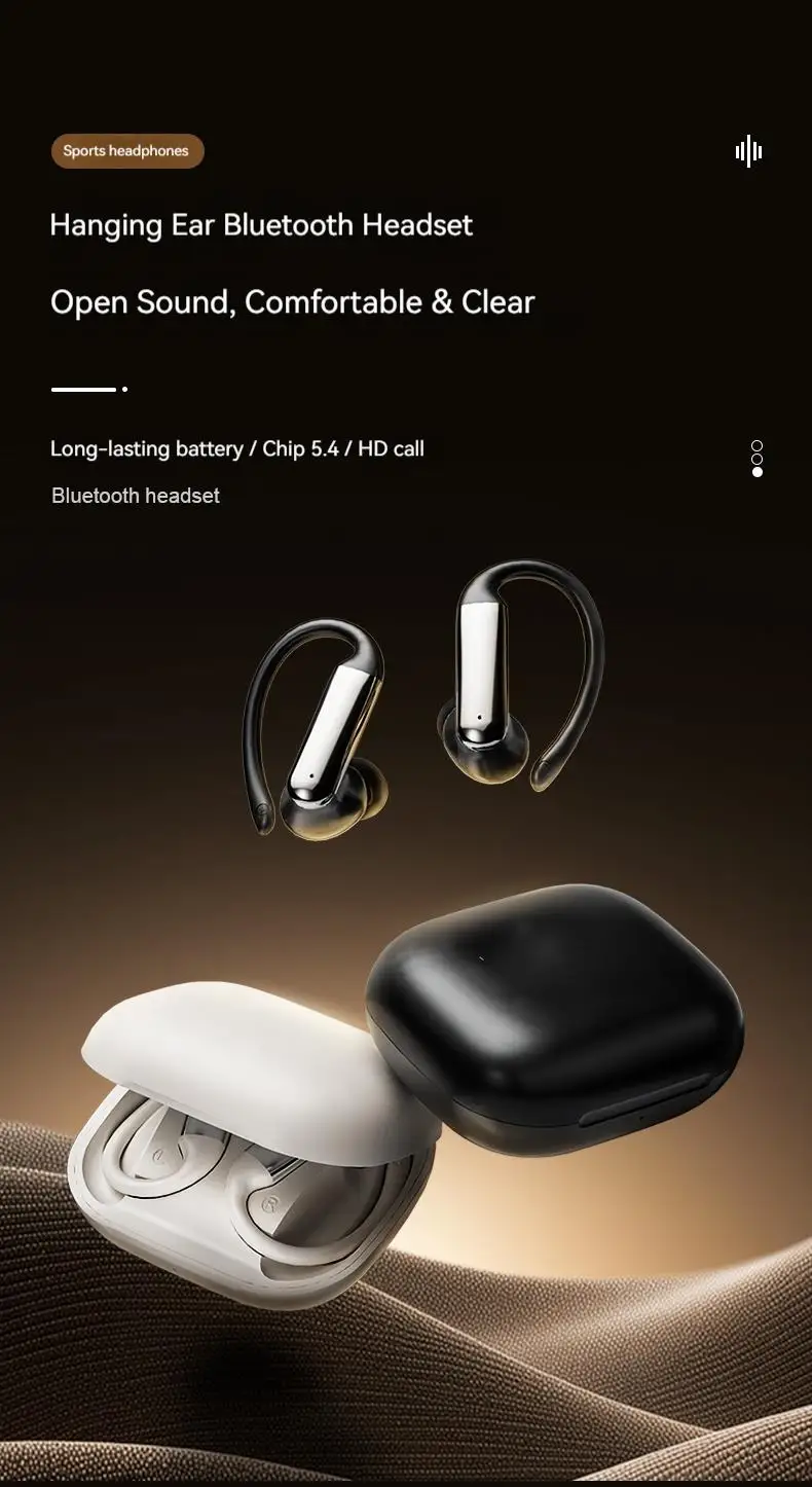 Ear Clip Earbuds Surround Sound Wireless Bluetooth 5.4 Headsets Noise Reduction Sports Gaming Headphones with HD Mic Earphones